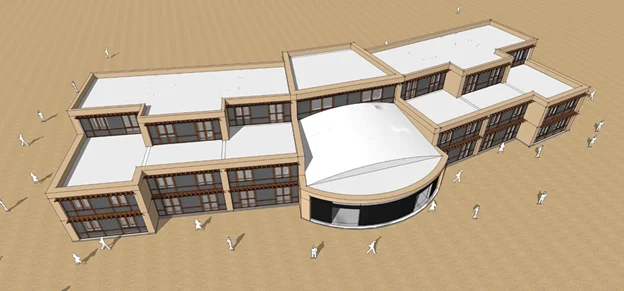 To further demonstrate the possibility of the passive solar heated technique, a large-scale PSH building in HIAL. The building would be multi-storey and have a footprint of around 22,000 sq ft. The building is currently under the preliminary construction stage and will employ the pillar-beam (framed structure) with an ex-fill construction technique. It will demonstrate the size and technique that can be used for building the headquarters of different governmental organizations in Ladakh. One of the first demonstrations for such a large-scale building.