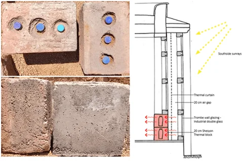 Thermal blocks for Modified Trombe Walls in PSH Buildings: